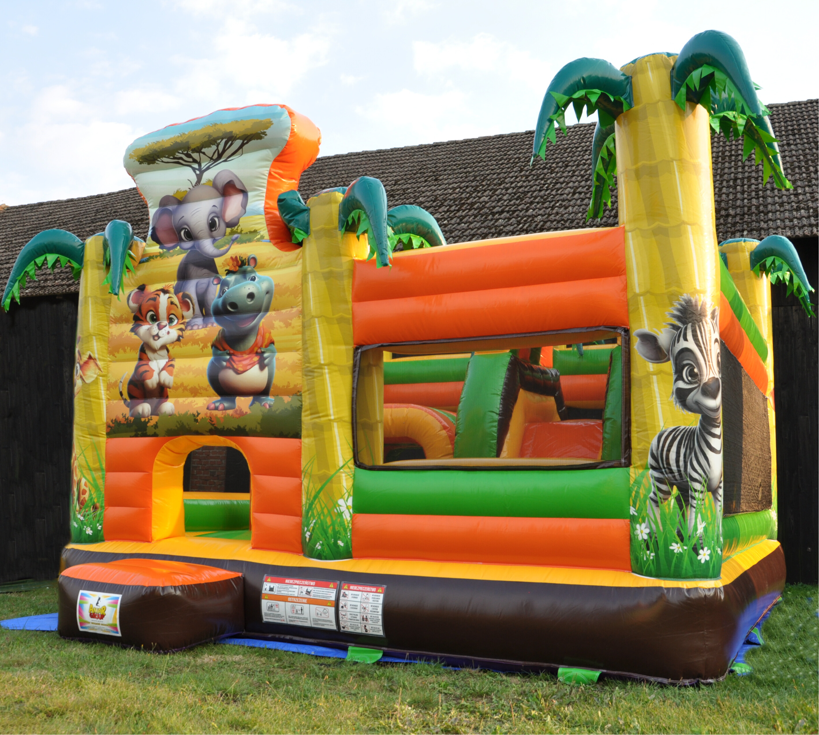 🦒 Dmuchany „Plac zabaw Safari” 🐘🌴Kolorowy dmuchany zamek z motywem dzikiej przygody! Dzieci mogą skakać, zjeżdżać i bawić się w otoczeniu safari – to idealna atrakcja, która łączy w sobie kilka form zabawy w jednym. Sprawdzi się na urodzinach, festynach i rodzinnych imprezach.